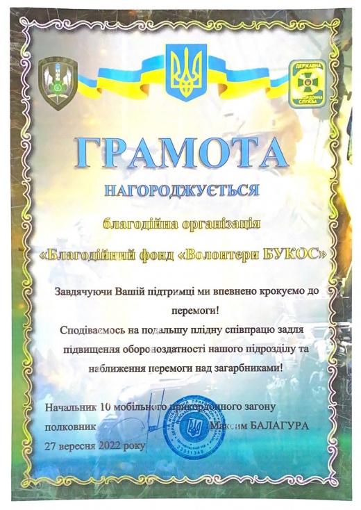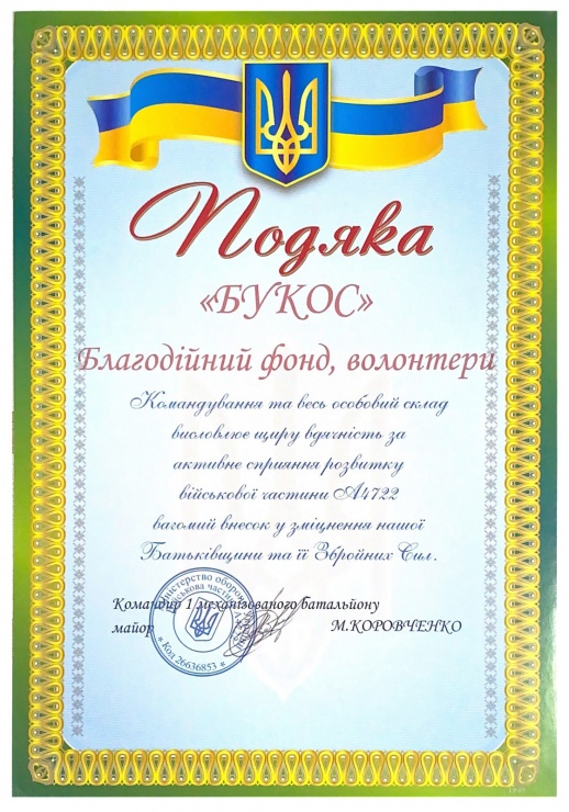 перемогу України Благодійна організація «Волонтери Букос»